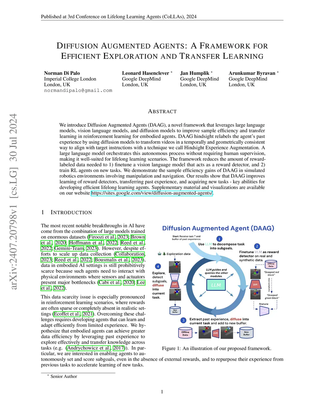 Diffusion Augmented Agents: A Framework for Efficient Exploration and