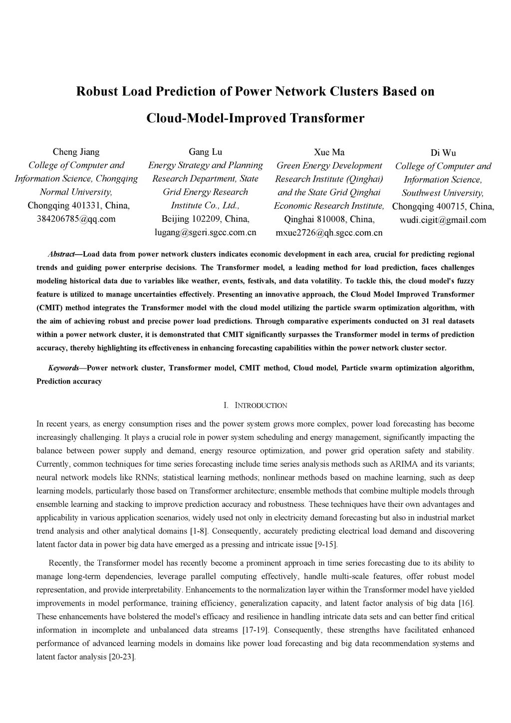 Load data from power network clusters indicates economic development in each area, crucial for predicting regional trends and guiding power enterprise decisions. The Transformer model, a leading method for load prediction, faces challenges modeling historical data due to variables like weather, events, festivals, and data volatility. To tackle this, the cloud model's fuzzy feature is utilized to manage uncertainties effectively. Presenting an innovative approach, the Cloud Model Improved Transformer (CMIT) method integrates the Transformer model with the cloud model utilizing the particle swarm optimization algorithm, with the aim of achieving robust and precise power load predictions. Through comparative experiments conducted on 31 real datasets within a power network cluster, it is demonstrated that CMIT significantly surpasses the Transformer model in terms of prediction accuracy, thereby highlighting its effectiveness in enhancing forecasting capabilities within the power network cluster sector.