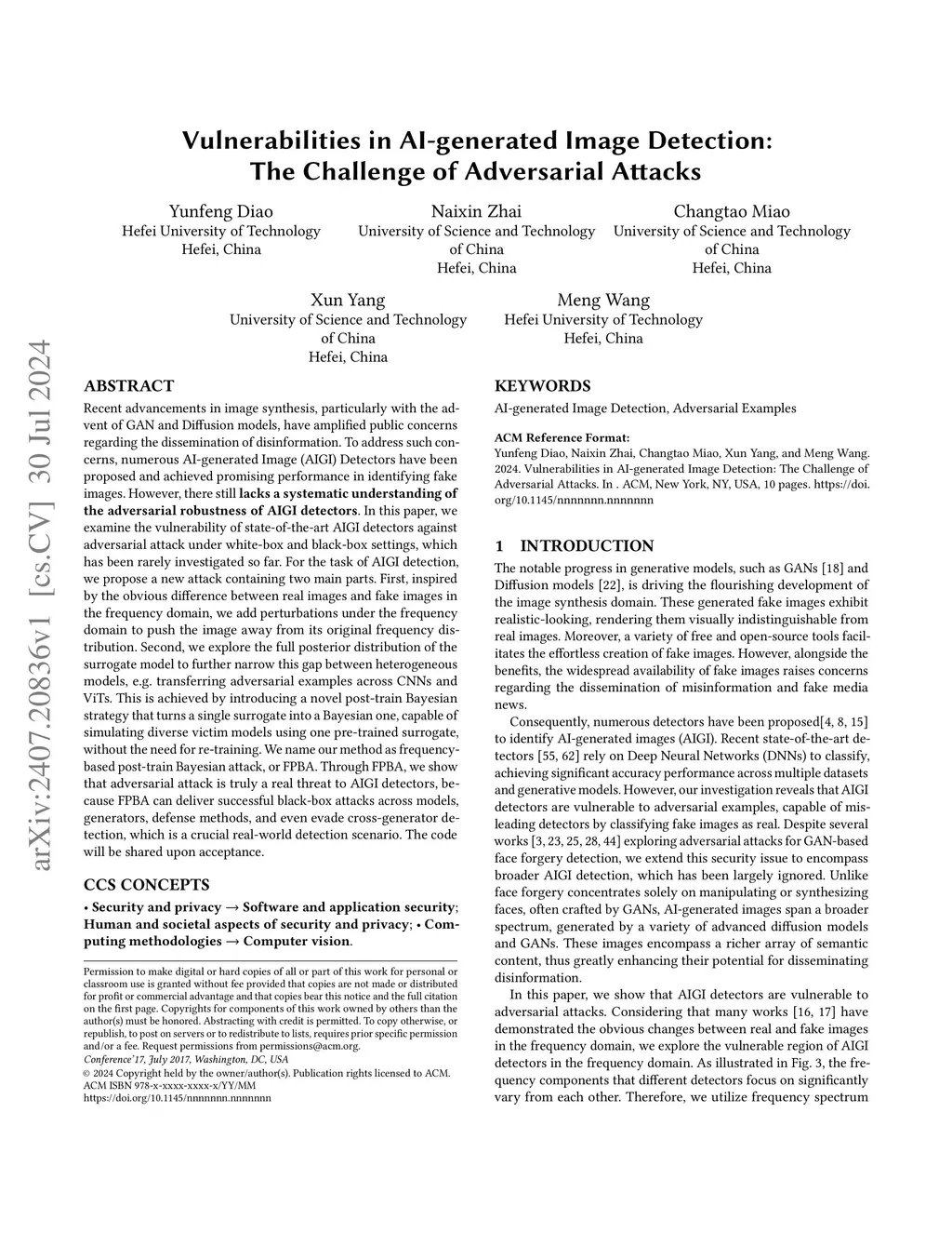 Recent advancements in image synthesis, particularly with the advent of GAN and Diffusion models, have amplified public concerns regarding the dissemination of disinformation. To address such concerns, numerous AI-generated Image (AIGI) Detectors have been proposed and achieved promising performance in identifying fake images. However, there still lacks a systematic understanding of the adversarial robustness of AIGI detectors. In this paper, we examine the vulnerability of state-of-the-art AIGI detectors against adversarial attack under white-box and black-box settings, which has been rarely investigated so far. To this end, we propose a new method to attack AIGI detectors. First, inspired by the obvious difference between real images and fake images in the frequency domain, we add perturbations under the frequency domain to push the image away from its original frequency distribution. Second, we explore the full posterior distribution of the surrogate model to further narrow this gap between heterogeneous AIGI detectors, e.g., transferring adversarial examples across CNNs and ViTs. This is achieved by introducing a novel post-train Bayesian strategy that turns a single surrogate into a Bayesian one, capable of simulating diverse victim models using one pre-trained surrogate, without the need for re-training. We name our method as Frequency-based Post-train Bayesian Attack, or FPBA. Through FPBA, we demonstrate that adversarial attacks pose a real threat to AIGI detectors. FPBA can deliver successful black-box attacks across various detectors, generators, defense methods, and even evade cross-generator and compressed image detection, which are crucial real-world detection scenarios. Our code is available atthis https URL.