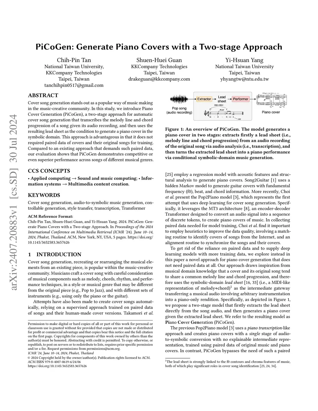 PiCoGen: Generate Piano Covers with a Two-stage Approach