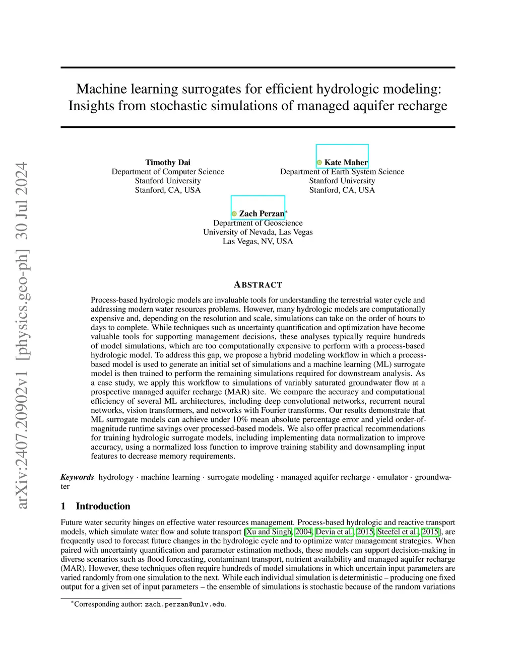 Machine learning surrogates for efficient hydrologic modeling: Insights from stochastic simulations of managed aquifer recharge