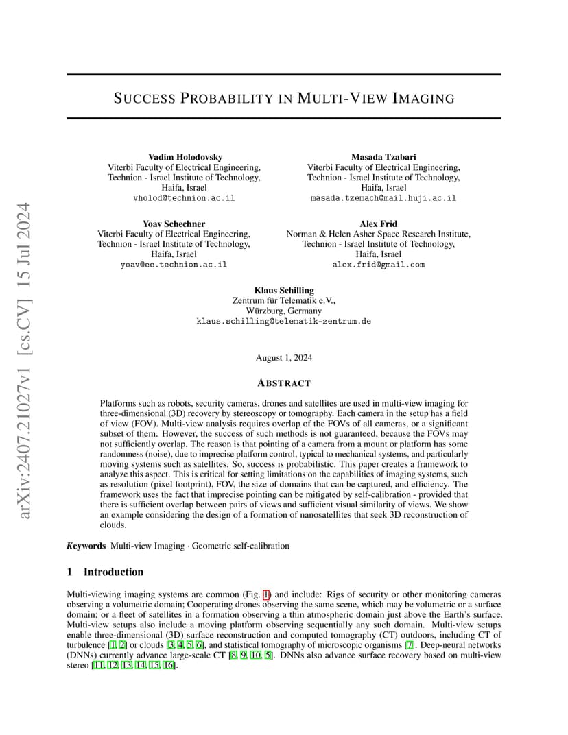 Platforms such as robots, security cameras, drones and satellites are used in multi-view imaging for three-dimensional (3D) recovery by stereoscopy or tomography. Each camera in the setup has a field of view (FOV). Multi-view analysis requires overlap of the FOVs of all cameras, or a significant subset of them. However, the success of such methods is not guaranteed, because the FOVs may not sufficiently overlap. The reason is that pointing of a camera from a mount or platform has some randomness (noise), due to imprecise platform control, typical to mechanical systems, and particularly moving systems such as satellites. So, success is probabilistic. This paper creates a framework to analyze this aspect. This is critical for setting limitations on the capabilities of imaging systems, such as resolution (pixel footprint), FOV, the size of domains that can be captured, and efficiency. The framework uses the fact that imprecise pointing can be mitigated by self-calibration - provided that there is sufficient overlap between pairs of views and sufficient visual similarity of views. We show an example considering the design of a formation of nanosatellites that seek 3D reconstruction of clouds.