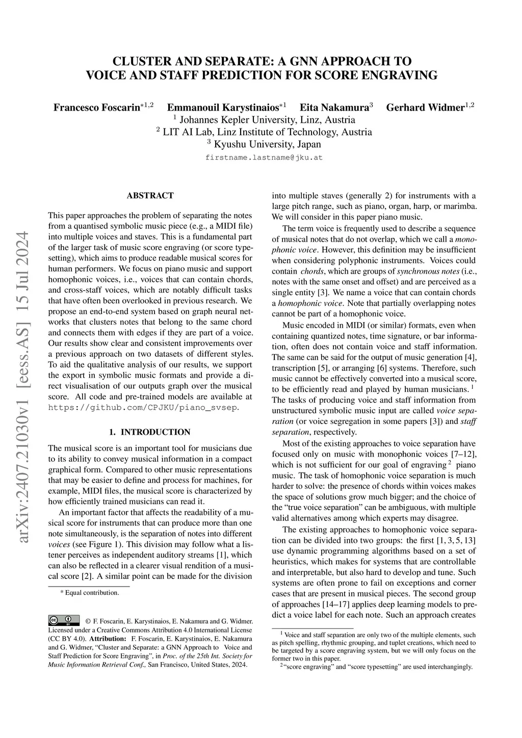 Cluster and Separate: a GNN Approach to Voice and Staff Prediction for
