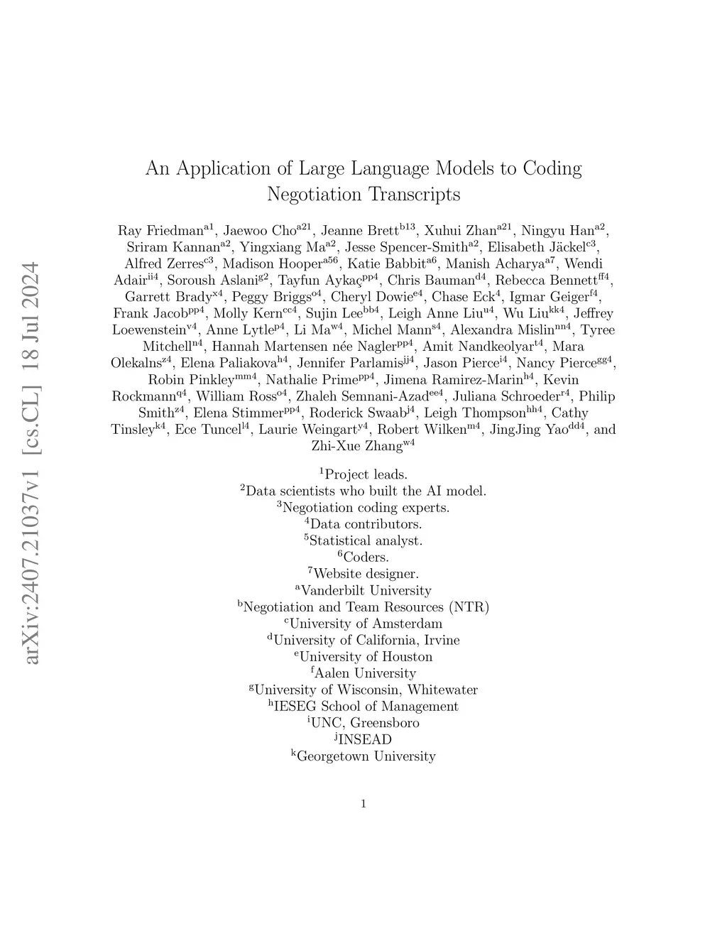 In recent years, Large Language Models (LLM) have demonstrated impressive capabilities in the field of natural language processing (NLP). This paper explores the application of LLMs in negotiation transcript analysis by the Vanderbilt AI Negotiation Lab. Starting in September 2022, we applied multiple strategies using LLMs from zero shot learning to fine tuning models to in-context learning). The final strategy we developed is explained, along with how to access and use the model. This study provides a sense of both the opportunities and roadblocks for the implementation of LLMs in real life applications and offers a model for how LLMs can be applied to coding in other fields.