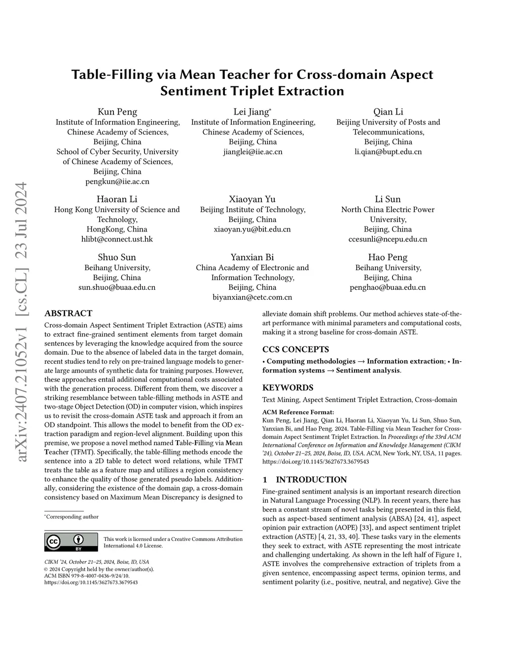 Table-Filling via Mean Teacher for Cross-domain Aspect Sentiment Triplet