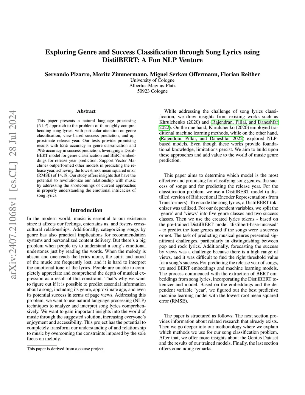 Exploring Genre and Success Classification through Song Lyrics using