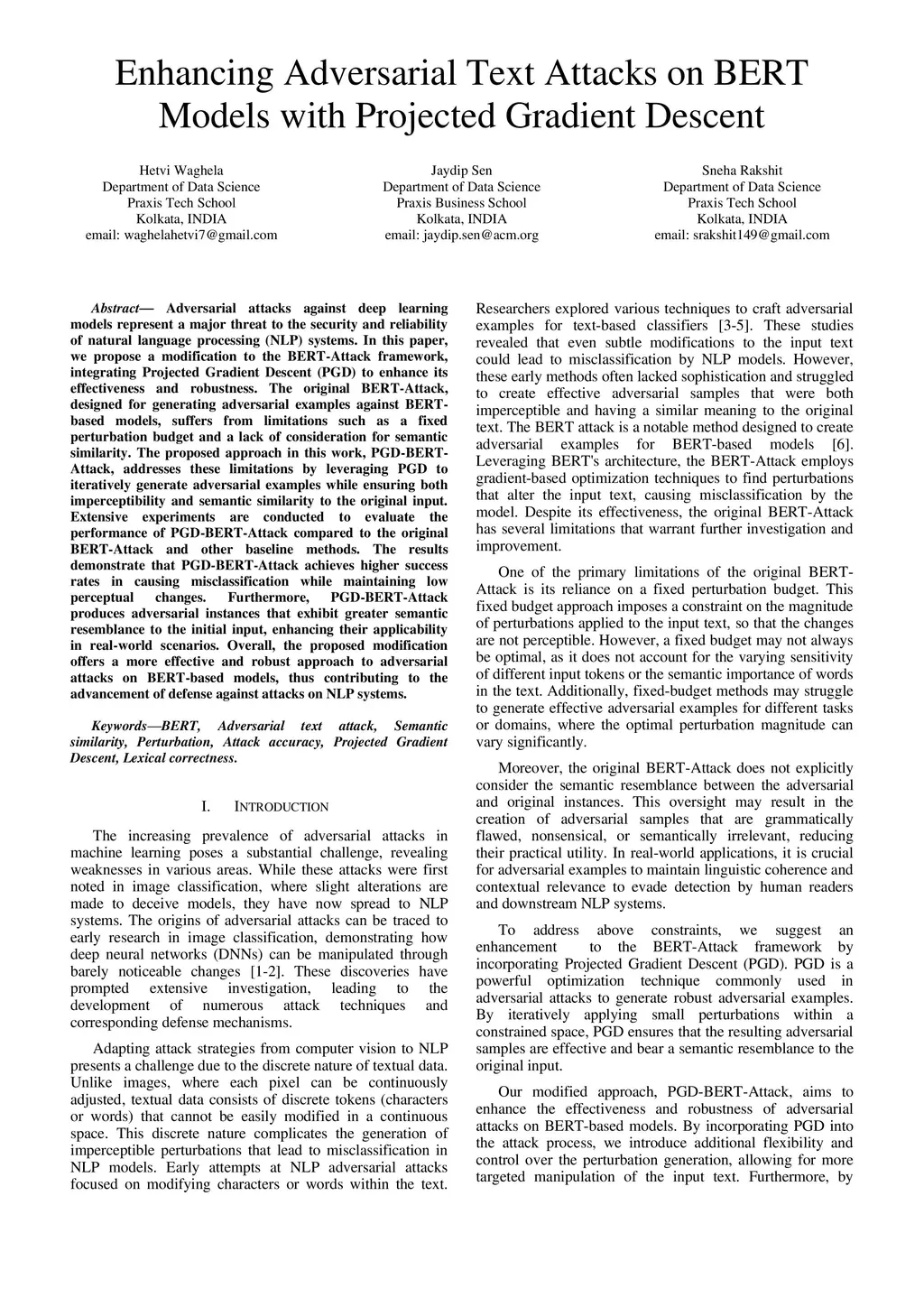 Adversarial attacks against deep learning models represent a major threat to the security and reliability of natural language processing (NLP) systems. In this paper, we propose a modification to the BERT-Attack framework, integrating Projected Gradient Descent (PGD) to enhance its effectiveness and robustness. The original BERT-Attack, designed for generating adversarial examples against BERT-based models, suffers from limitations such as a fixed perturbation budget and a lack of consideration for semantic similarity. The proposed approach in this work, PGD-BERT-Attack, addresses these limitations by leveraging PGD to iteratively generate adversarial examples while ensuring both imperceptibility and semantic similarity to the original input. Extensive experiments are conducted to evaluate the performance of PGD-BERT-Attack compared to the original BERT-Attack and other baseline methods. The results demonstrate that PGD-BERT-Attack achieves higher success rates in causing misclassification while maintaining low perceptual changes. Furthermore, PGD-BERT-Attack produces adversarial instances that exhibit greater semantic resemblance to the initial input, enhancing their applicability in real-world scenarios. Overall, the proposed modification offers a more effective and robust approach to adversarial attacks on BERT-based models, thus contributing to the advancement of defense against attacks on NLP systems.
