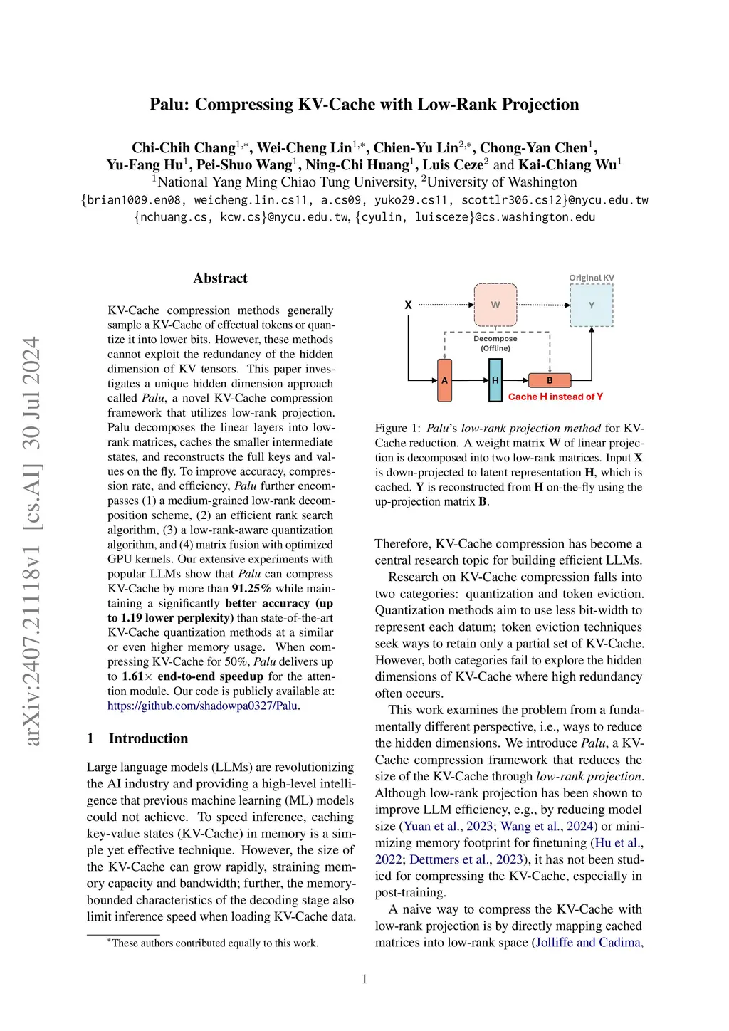 Palu: Compressing KV-Cache with Low-Rank Projection