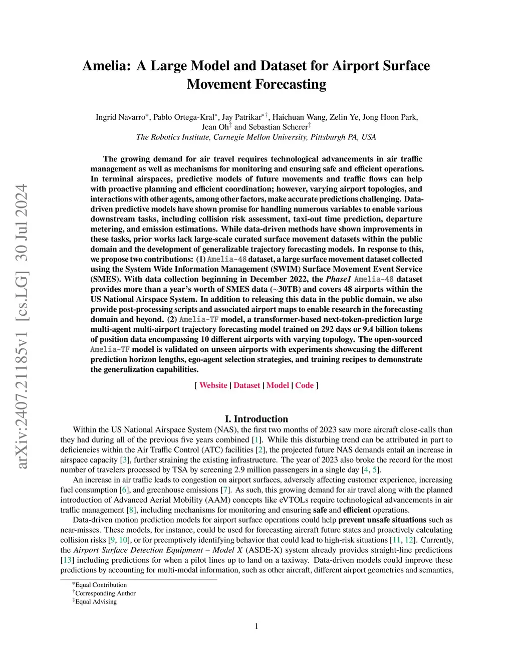 Amelia: A Large Dataset and Benchmark for Airport Surface Movement Forecasting