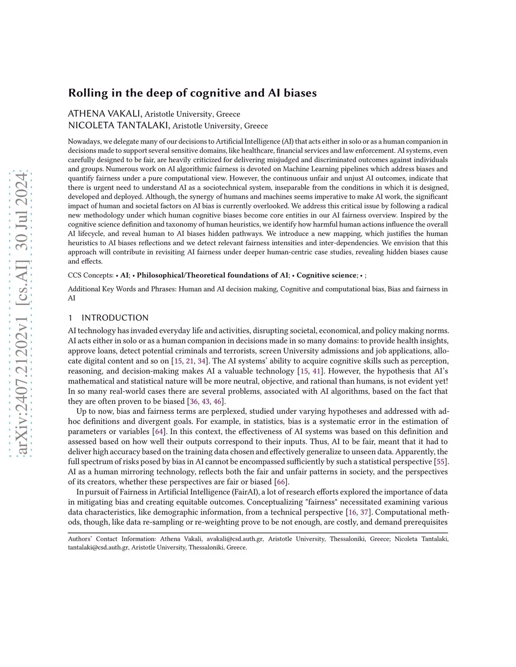 Nowadays, we delegate many of our decisions to Artificial Intelligence (AI) that acts either in solo or as a human companion in decisions made to support several sensitive domains, like healthcare, financial services and law enforcement. AI systems, even carefully designed to be fair, are heavily criticized for delivering misjudged and discriminated outcomes against individuals and groups. Numerous work on AI algorithmic fairness is devoted on Machine Learning pipelines which address biases and quantify fairness under a pure computational view. However, the continuous unfair and unjust AI outcomes, indicate that there is urgent need to understand AI as a sociotechnical system, inseparable from the conditions in which it is designed, developed and deployed. Although, the synergy of humans and machines seems imperative to make AI work, the significant impact of human and societal factors on AI bias is currently overlooked. We address this critical issue by following a radical new methodology under which human cognitive biases become core entities in our AI fairness overview. Inspired by the cognitive science definition and taxonomy of human heuristics, we identify how harmful human actions influence the overall AI lifecycle, and reveal human to AI biases hidden pathways. We introduce a new mapping, which justifies the human heuristics to AI biases reflections and we detect relevant fairness intensities and inter-dependencies. We envision that this approach will contribute in revisiting AI fairness under deeper human-centric case studies, revealing hidden biases cause and effects.