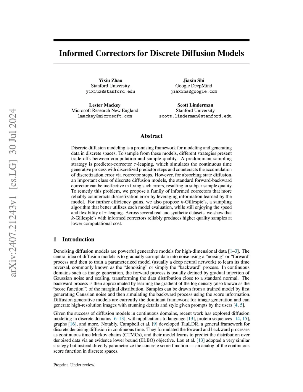 Discrete diffusion has emerged as a powerful framework for generative modeling in discrete domains, yet efficiently sampling from these models remains challenging. Existing sampling strategies often struggle to balance computation and sample quality when the number of sampling steps is reduced, even when the model has learned the data distribution well. To address these limitations, we propose a predictor-corrector sampling scheme where the corrector is informed by the diffusion model to more reliably counter the accumulating approximation errors. To further enhance the effectiveness of our informed corrector, we introduce complementary architectural modifications based on hollow transformers and a simple tailored training objective that leverages more training signal. We use a synthetic example to illustrate the failure modes of existing samplers and show how informed correctors alleviate these problems. On the text8 and tokenized ImageNet 256x256 datasets, our informed corrector consistently produces superior samples with fewer errors or improved FID scores for discrete diffusion models. These results underscore the potential of informed correctors for fast and high-fidelity generation using discrete diffusion. Our code is available atthis https URL.