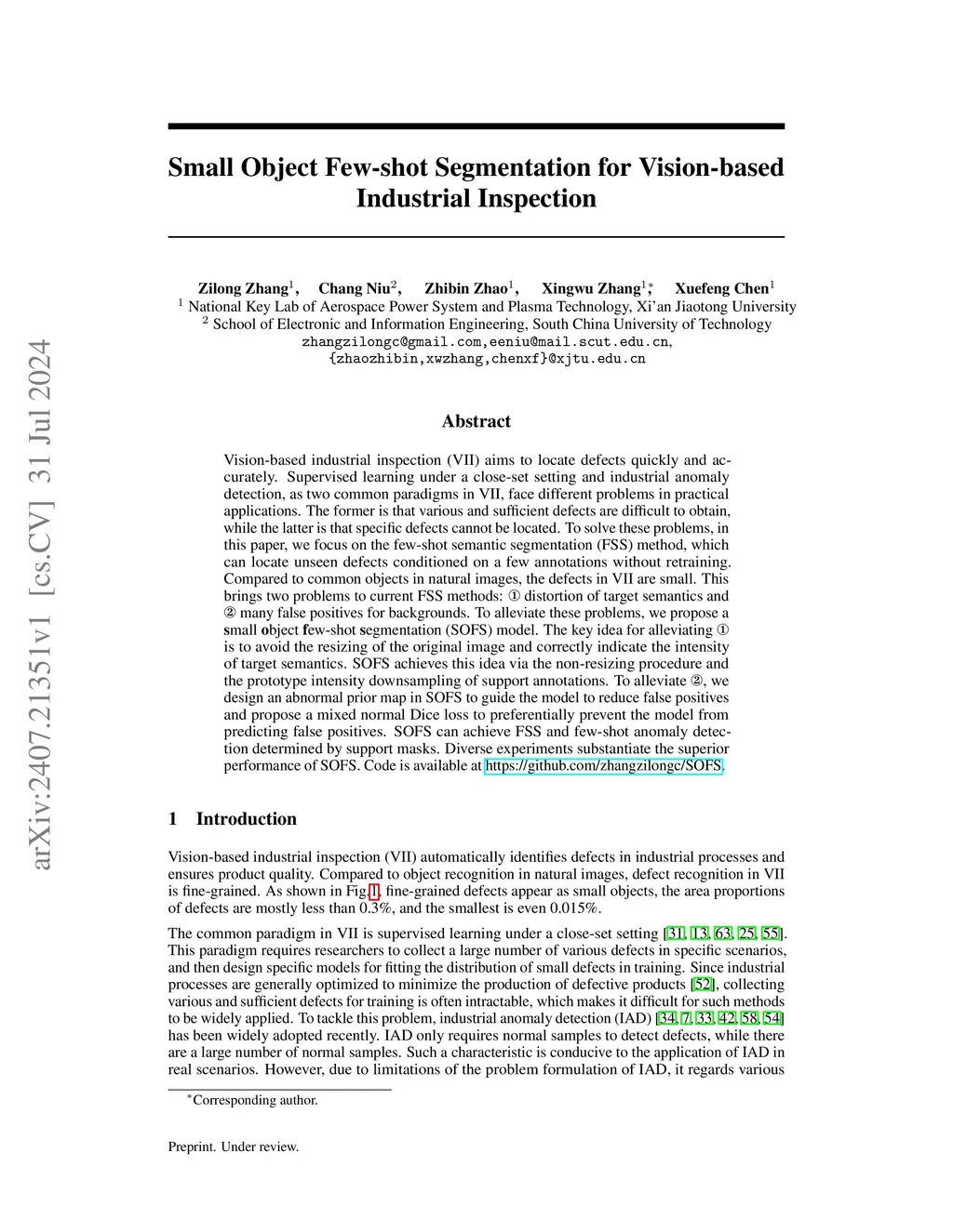 Small Object Few-shot Segmentation for Vision-based Industrial