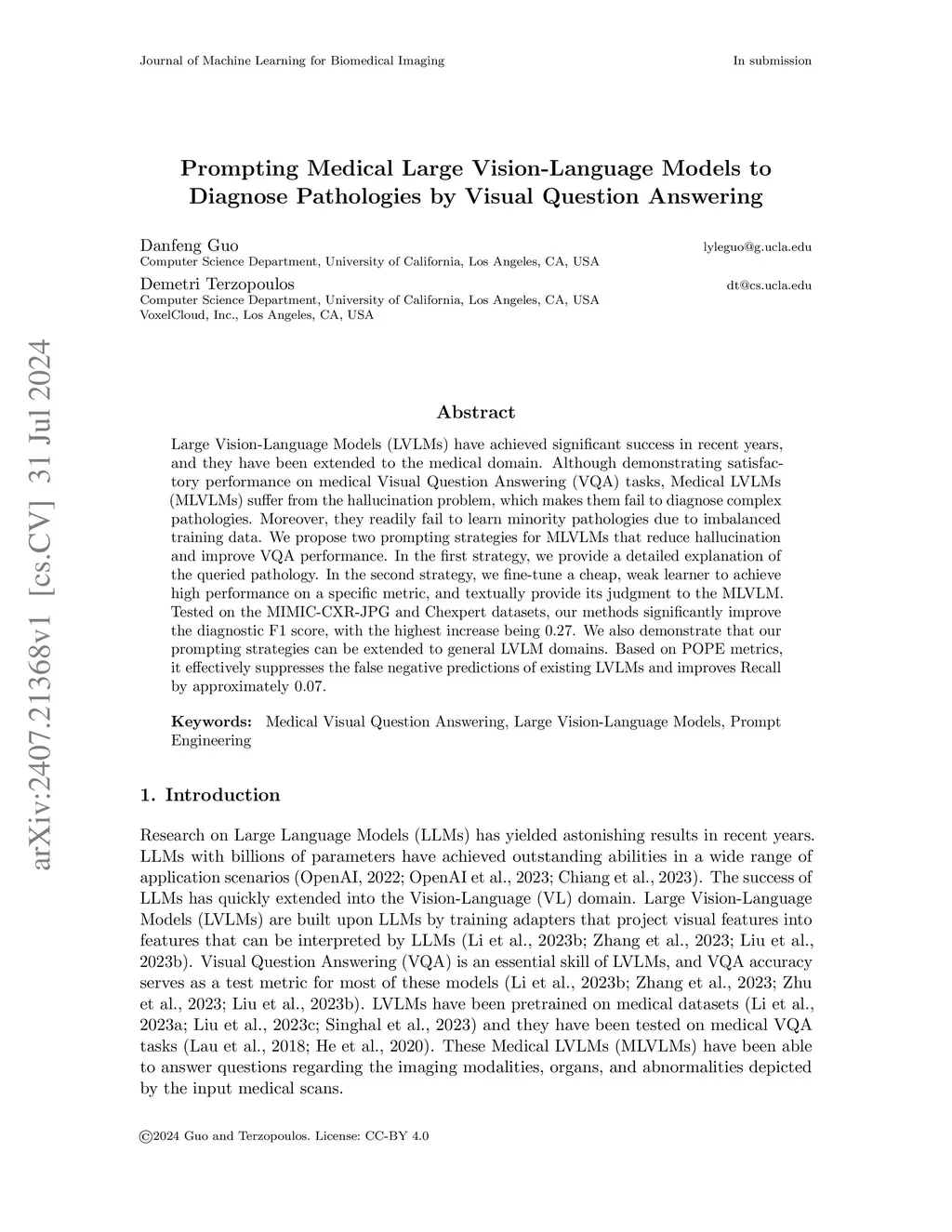 Prompting Medical Large Vision-Language Models to Diagnose Pathologies by Visual Question Answering