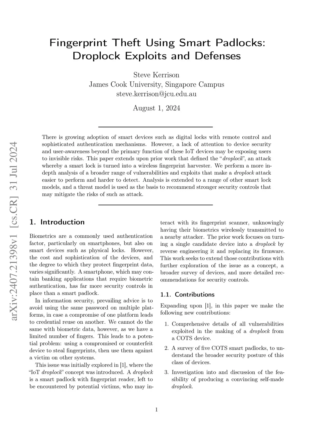 Fingerprint Theft Using Smart Padlocks: Droplock Exploits and Defenses