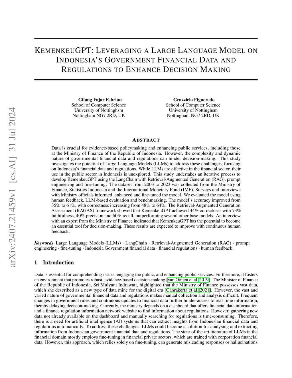 KemenkeuGPT: Leveraging a Large Language Model on Indonesia's Government