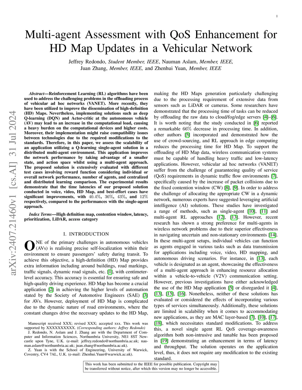 Multi-agent Assessment with QoS Enhancement for HD Map Updates in a