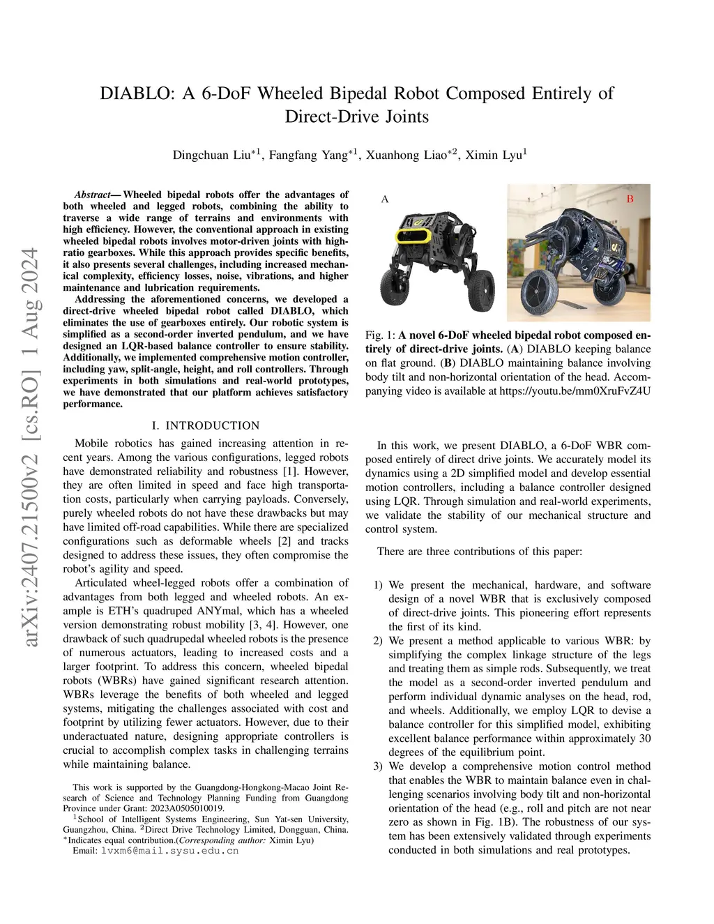 DIABLO: A 6-DoF Wheeled Bipedal Robot Composed Entirely of Direct-Drive