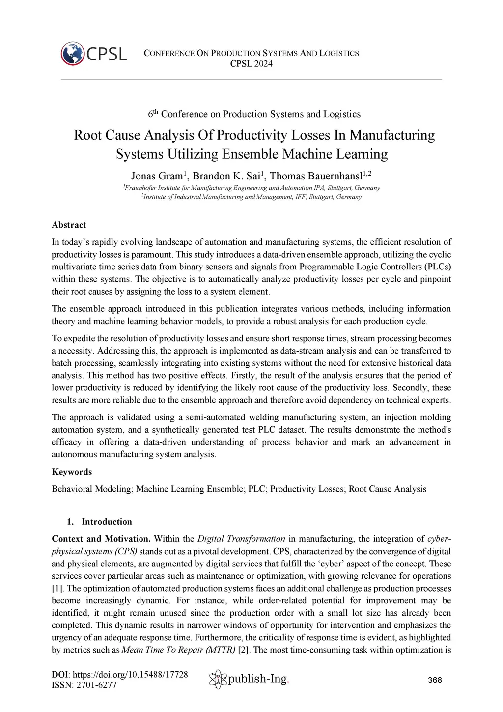 Root Cause Analysis Of Productivity Losses In Manufacturing Systems