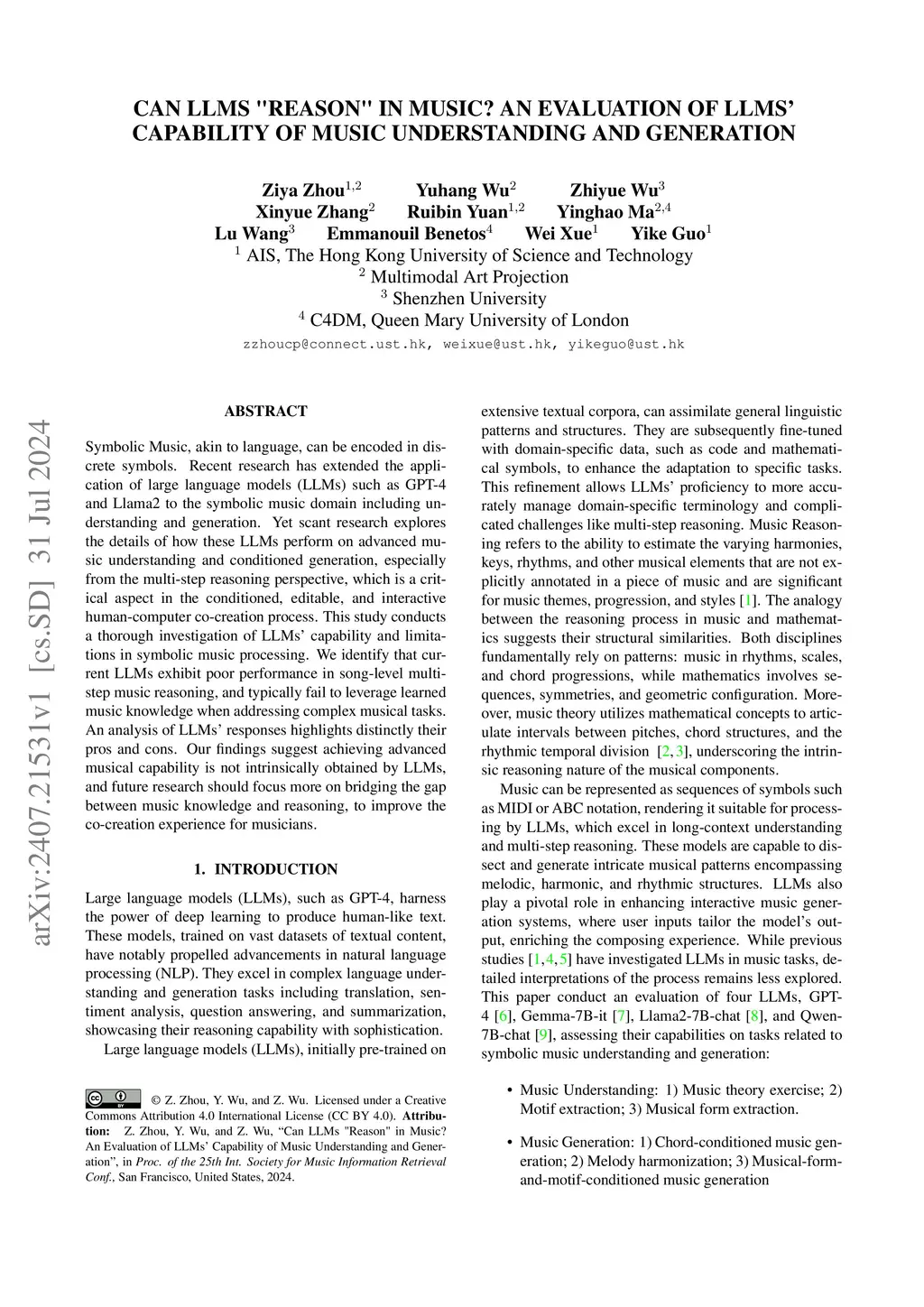 Symbolic Music, akin to language, can be encoded in discrete symbols. Recent research has extended the application of large language models (LLMs) such as GPT-4 and Llama2 to the symbolic music domain including understanding and generation. Yet scant research explores the details of how these LLMs perform on advanced music understanding and conditioned generation, especially from the multi-step reasoning perspective, which is a critical aspect in the conditioned, editable, and interactive human-computer co-creation process. This study conducts a thorough investigation of LLMs' capability and limitations in symbolic music processing. We identify that current LLMs exhibit poor performance in song-level multi-step music reasoning, and typically fail to leverage learned music knowledge when addressing complex musical tasks. An analysis of LLMs' responses highlights distinctly their pros and cons. Our findings suggest achieving advanced musical capability is not intrinsically obtained by LLMs, and future research should focus more on bridging the gap between music knowledge and reasoning, to improve the co-creation experience for musicians.