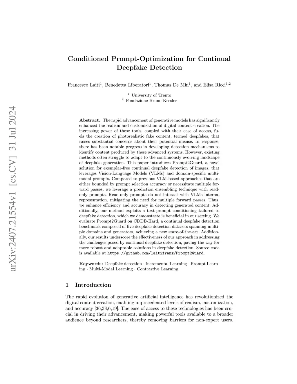 Conditioned Prompt-Optimization for Continual Deepfake Detection