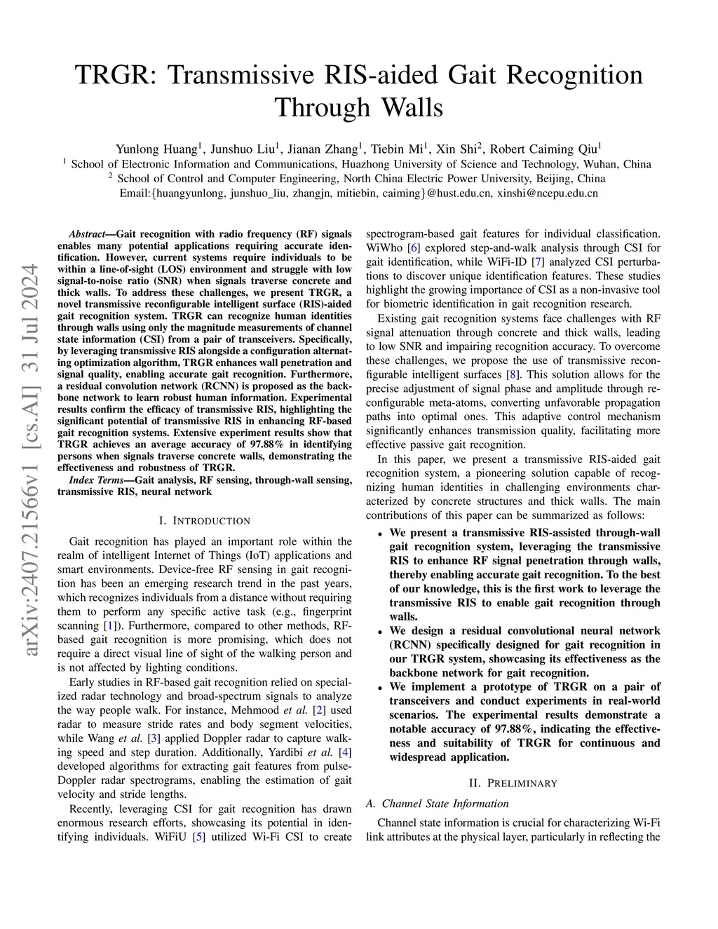 TRGR: Transmissive RIS-aided Gait Recognition Through Walls