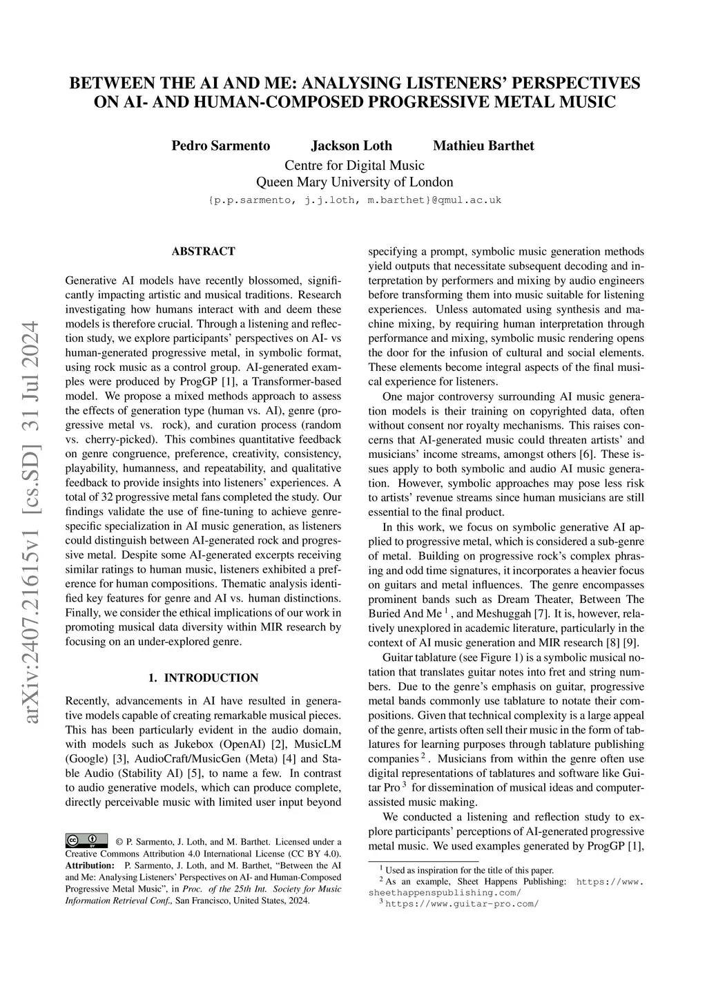 Between the AI and Me: Analysing Listeners' Perspectives on AI- and