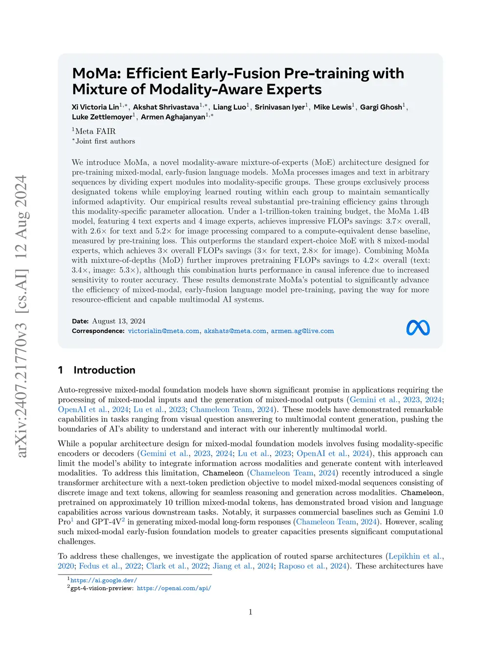MoMa: Efficient Early-Fusion Pre-training with Mixture of Modality-Aware