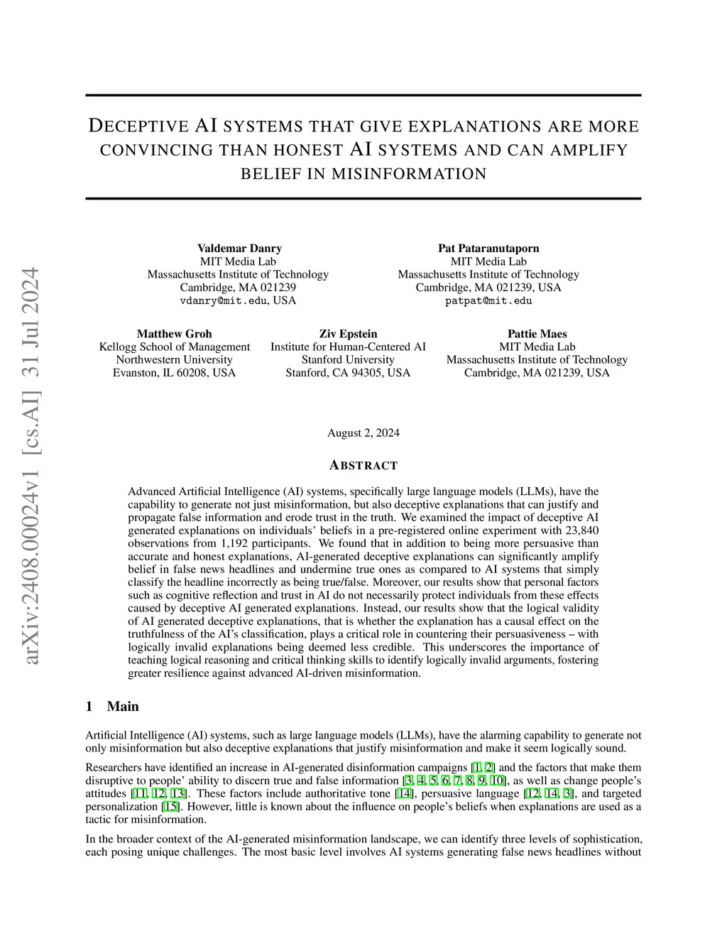 honest AI systems and can amplify belief in misinformation