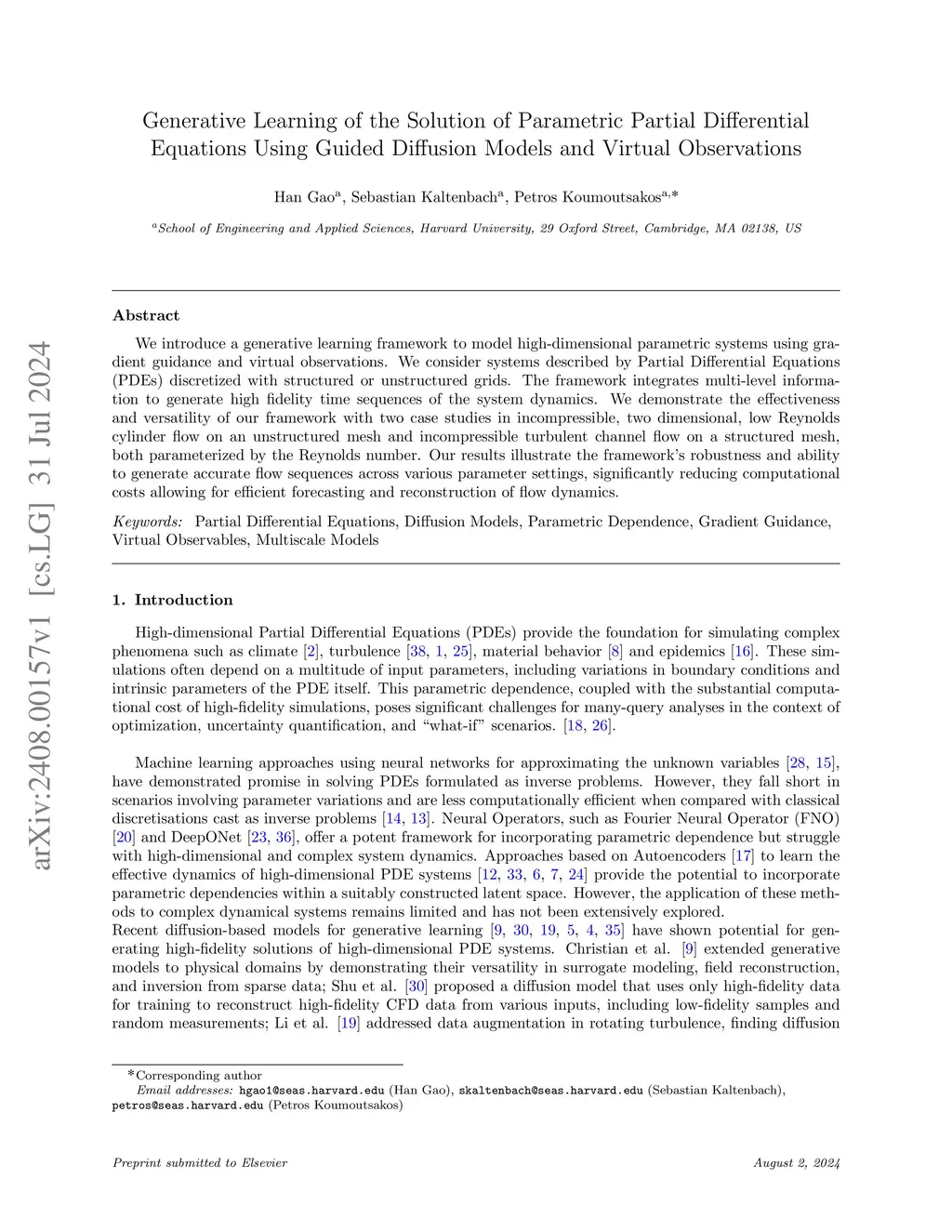 We introduce a generative learning framework to model high-dimensional parametric systems using gradient guidance and virtual observations. We consider systems described by Partial Differential Equations (PDEs) discretized with structured or unstructured grids. The framework integrates multi-level information to generate high fidelity time sequences of the system dynamics. We demonstrate the effectiveness and versatility of our framework with two case studies in incompressible, two dimensional, low Reynolds cylinder flow on an unstructured mesh and incompressible turbulent channel flow on a structured mesh, both parameterized by the Reynolds number. Our results illustrate the framework's robustness and ability to generate accurate flow sequences across various parameter settings, significantly reducing computational costs allowing for efficient forecasting and reconstruction of flow dynamics.