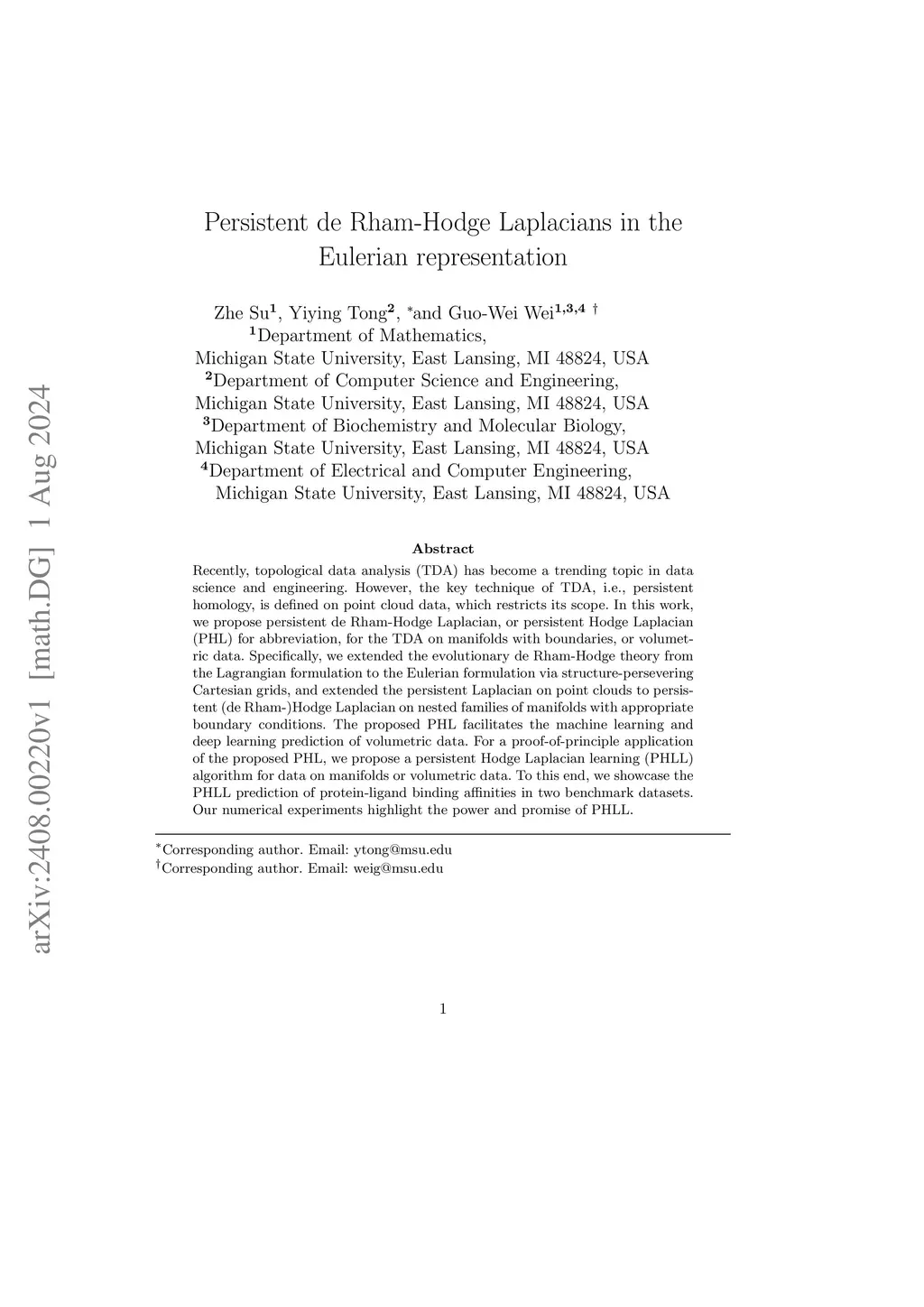 Recently, topological data analysis (TDA) has become a trending topic in data science and engineering. However, the key technique of TDA, i.e., persistent homology, is defined on point cloud data, which restricts its scope. In this work, we propose persistent de Rham-Hodge Laplacian, or persistent Hodge Laplacian (PHL) for abbreviation, for the TDA on manifolds with boundaries, or volumetric data. Specifically, we extended the evolutionary de Rham-Hodge theory from the Lagrangian formulation to the Eulerian formulation via structure-persevering Cartesian grids, and extended the persistent Laplacian on point clouds to persistent (de Rham-)Hodge Laplacian on nested families of manifolds with appropriate boundary conditions. The proposed PHL facilitates the machine learning and deep learning prediction of volumetric data. For a proof-of-principle application of the proposed PHL, we propose a persistent Hodge Laplacian learning (PHLL) algorithm for data on manifolds or volumetric data. To this end, we showcase the PHLL prediction of protein-ligand binding affinities in two benchmark datasets. Our numerical experiments highlight the power and promise of PHLL.