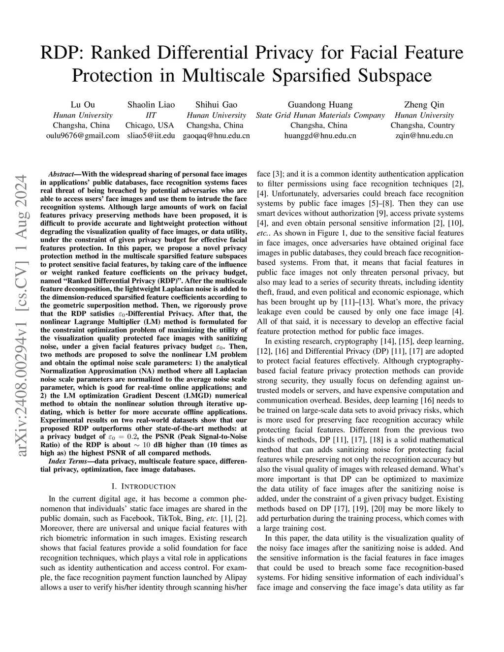 RDP: Ranked Differential Privacy for Facial Feature Protection in