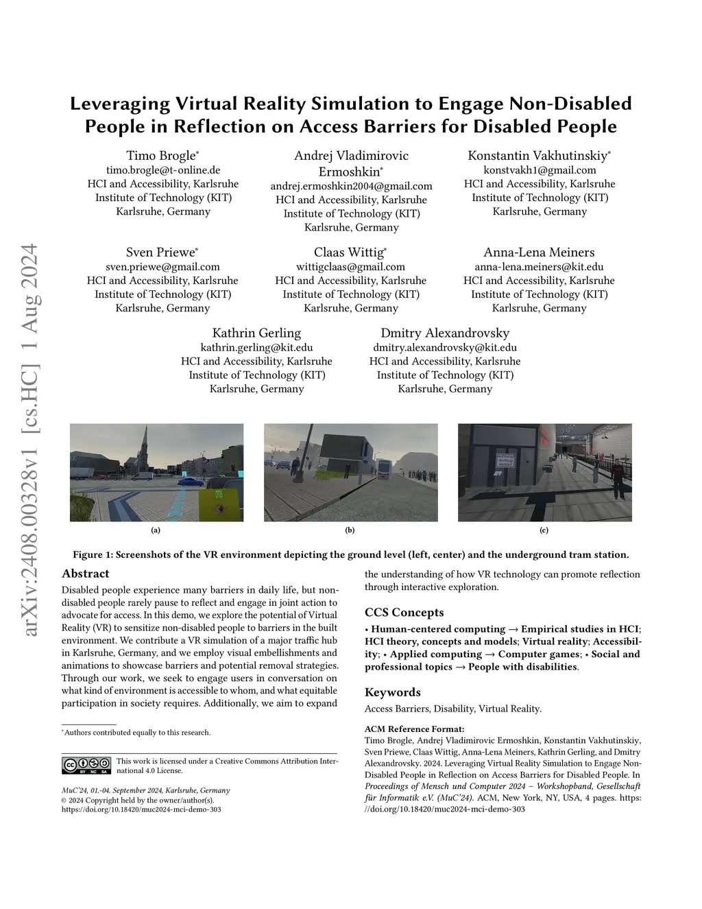 Disabled people experience many barriers in daily life, but non-disabled people rarely pause to reflect and engage in joint action to advocate for access. In this demo, we explore the potential of Virtual Reality (VR) to sensitize non-disabled people to barriers in the built environment. We contribute a VR simulation of a major traffic hub in Karlsruhe, Germany, and we employ visual embellishments and animations to showcase barriers and potential removal strategies. Through our work, we seek to engage users in conversation on what kind of environment is accessible to whom, and what equitable participation in society requires. Additionally, we aim to expand the understanding of how VR technology can promote reflection through interactive exploration.