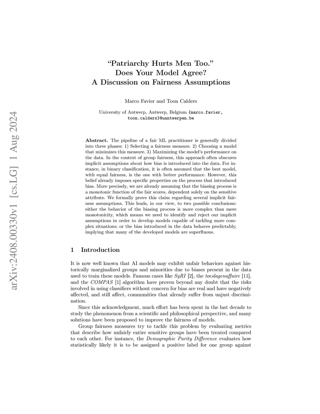 The pipeline of a fair ML practitioner is generally divided into three phases: 1) Selecting a fairness measure. 2) Choosing a model that minimizes this measure. 3) Maximizing the model's performance on the data. In the context of group fairness, this approach often obscures implicit assumptions about how bias is introduced into the data. For instance, in binary classification, it is often assumed that the best model, with equal fairness, is the one with better performance. However, this belief already imposes specific properties on the process that introduced bias. More precisely, we are already assuming that the biasing process is a monotonic function of the fair scores, dependent solely on the sensitive attribute. We formally prove this claim regarding several implicit fairness assumptions. This leads, in our view, to two possible conclusions: either the behavior of the biasing process is more complex than mere monotonicity, which means we need to identify and reject our implicit assumptions in order to develop models capable of tackling more complex situations; or the bias introduced in the data behaves predictably, implying that many of the developed models are superfluous.