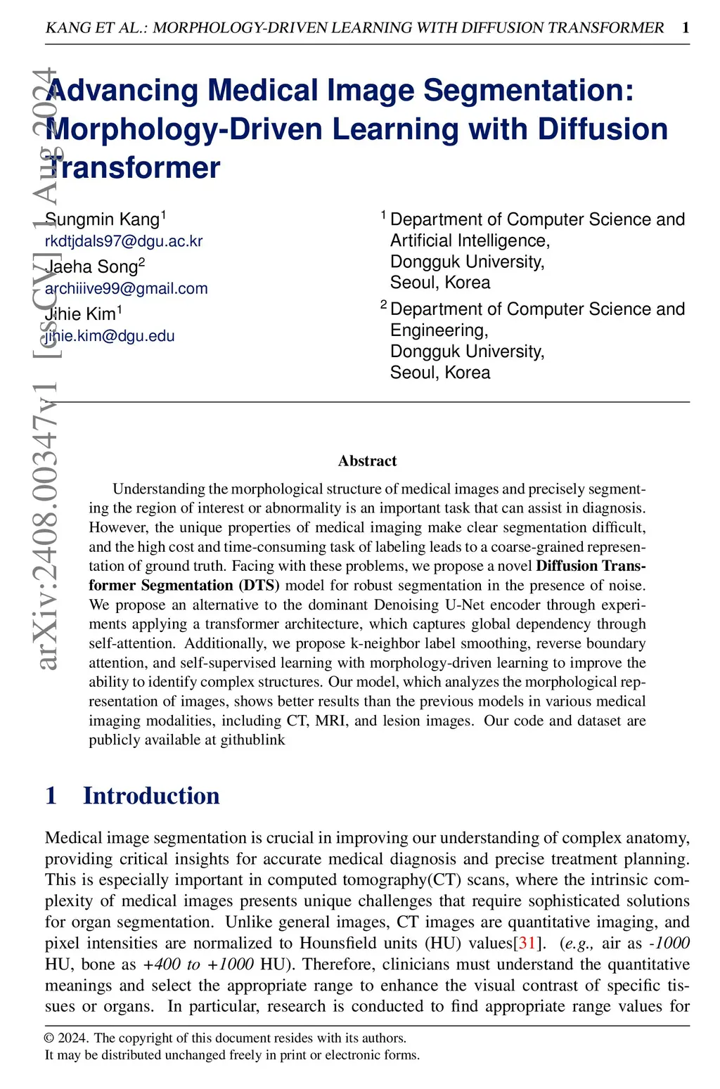 Understanding the morphological structure of medical images and precisely segmenting the region of interest or abnormality is an important task that can assist in diagnosis. However, the unique properties of medical imaging make clear segmentation difficult,and the high cost and time-consuming task of labeling leads to a coarse-grained representation of ground truth. Facing with these problems, we propose a novel Diffusion Transformer Segmentation (DTS) model for robust segmentation in the presence of noise. We propose an alternative to the dominant Denoising U-Net encoder through experiments applying a transformer architecture, which captures global dependency through self-attention. Additionally, we propose k-neighbor label smoothing, reverse boundary attention, and self-supervised learning with morphology-driven learning to improve the ability to identify complex structures. Our model, which analyzes the morphological representation of images, shows better results than the previous models in various medical imaging modalities, including CT, MRI, and lesion images.