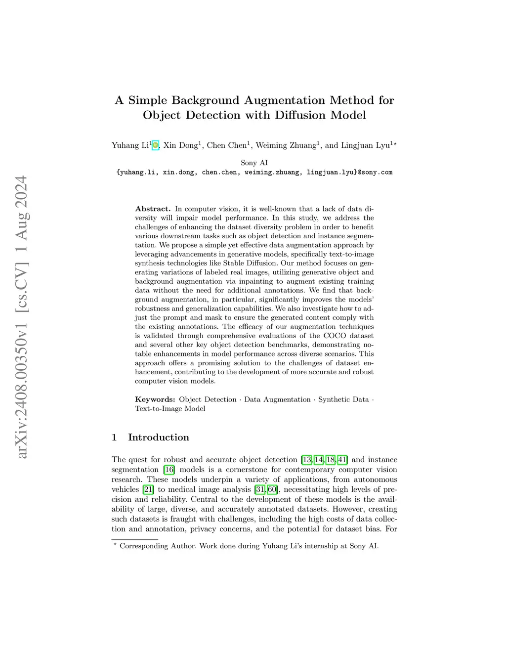 In computer vision, it is well-known that a lack of data diversity will impair model performance. In this study, we address the challenges of enhancing the dataset diversity problem in order to benefit various downstream tasks such as object detection and instance segmentation. We propose a simple yet effective data augmentation approach by leveraging advancements in generative models, specifically text-to-image synthesis technologies like Stable Diffusion. Our method focuses on generating variations of labeled real images, utilizing generative object and background augmentation via inpainting to augment existing training data without the need for additional annotations. We find that background augmentation, in particular, significantly improves the models' robustness and generalization capabilities. We also investigate how to adjust the prompt and mask to ensure the generated content comply with the existing annotations. The efficacy of our augmentation techniques is validated through comprehensive evaluations of the COCO dataset and several other key object detection benchmarks, demonstrating notable enhancements in model performance across diverse scenarios. This approach offers a promising solution to the challenges of dataset enhancement, contributing to the development of more accurate and robust computer vision models.