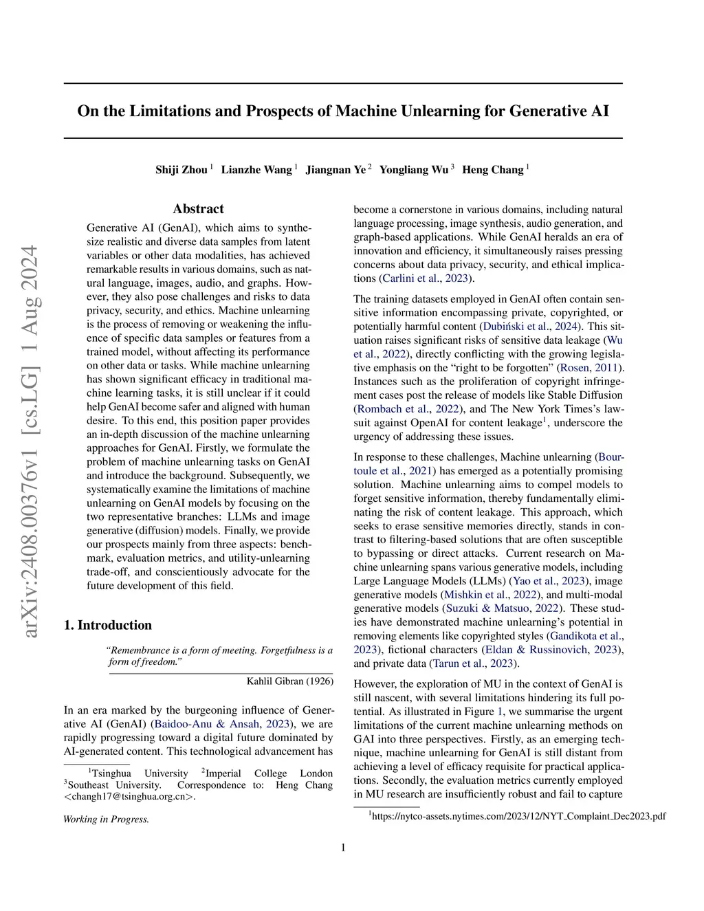 On the Limitations and Prospects of Machine Unlearning for Generative AI