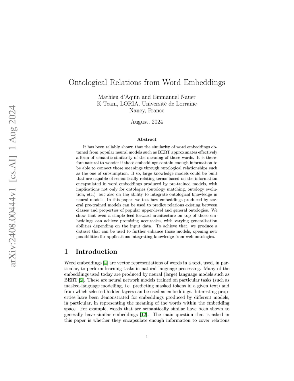 Ontological Relations from Word Embeddings