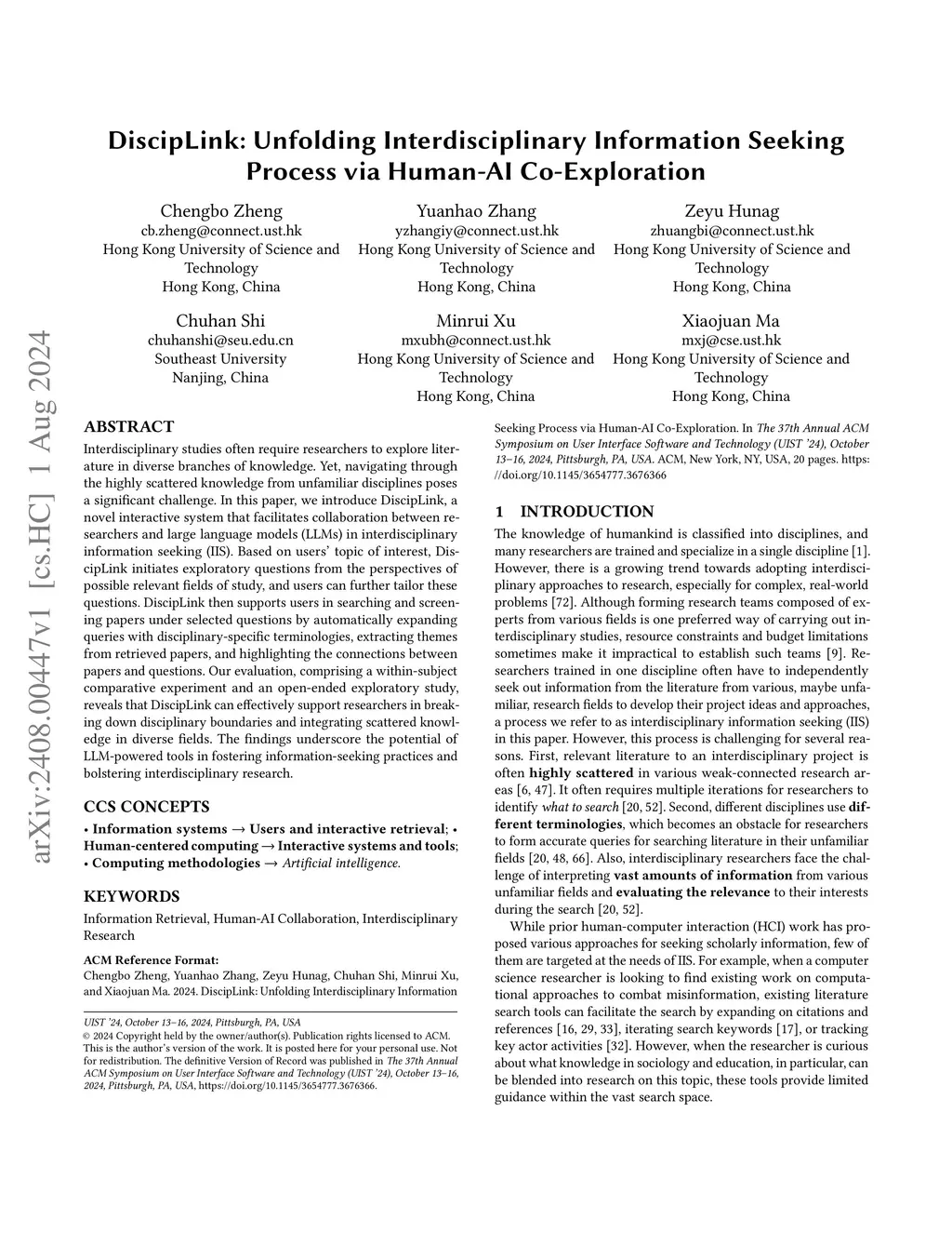 DiscipLink: Unfolding Interdisciplinary Information Seeking Process via