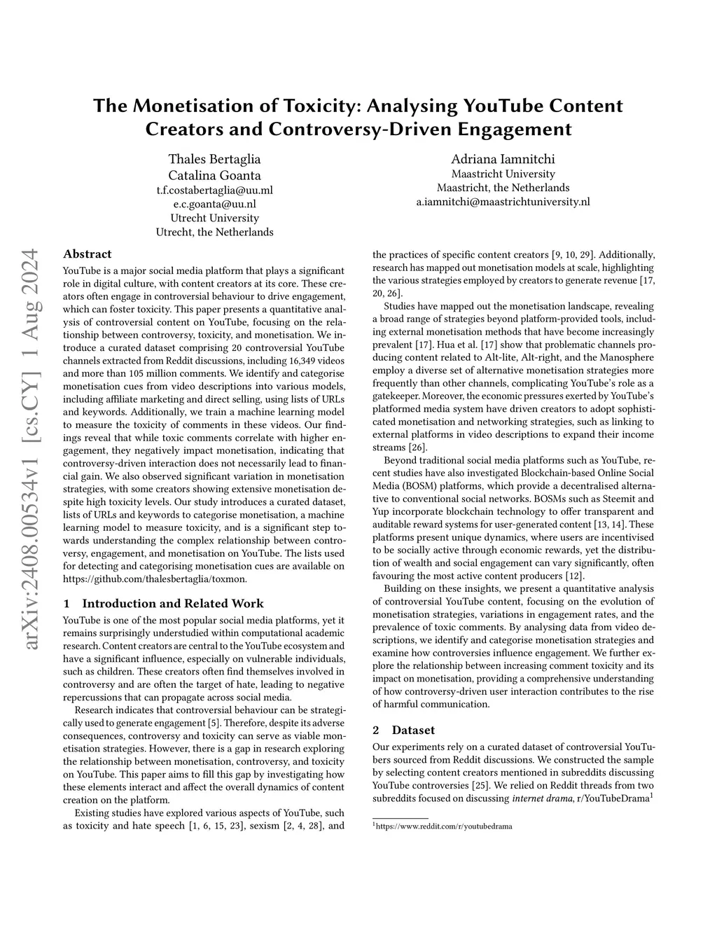 The Monetisation of Toxicity: Analysing YouTube Content Creators and