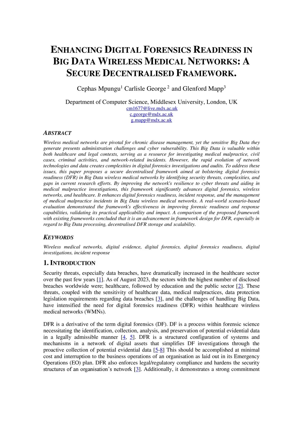 Enhancing Digital Forensics Readiness In Big Data Wireless Medical