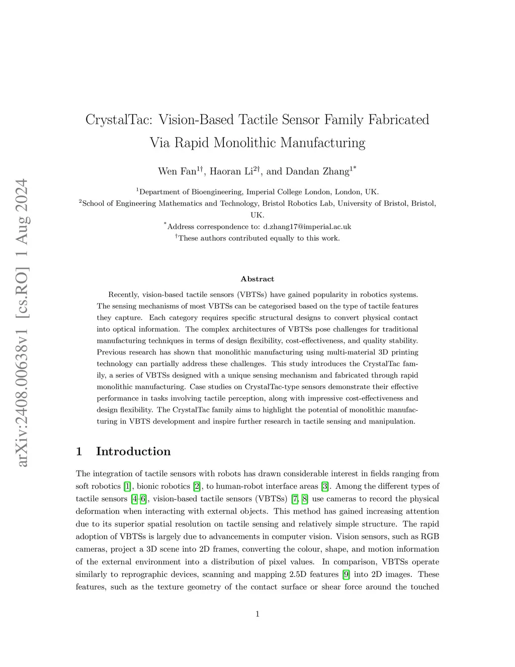 Recently, vision-based tactile sensors (VBTSs) have gained popularity in robotics systems. The sensing mechanisms of most VBTSs can be categorised based on the type of tactile features they capture. Each category requires specific structural designs to convert physical contact into optical information. The complex architectures of VBTSs pose challenges for traditional manufacturing techniques in terms of design flexibility, cost-effectiveness, and quality stability. Previous research has shown that monolithic manufacturing using multi-material 3D printing technology can partially address these challenges. This study introduces the CrystalTac family, a series of VBTSs designed with a unique sensing mechanism and fabricated through rapid monolithic manufacturing. Case studies on CrystalTac-type sensors demonstrate their effective performance in tasks involving tactile perception, along with impressive cost-effectiveness and design flexibility. The CrystalTac family aims to highlight the potential of monolithic manufacturing in VBTS development and inspire further research in tactile sensing and manipulation.