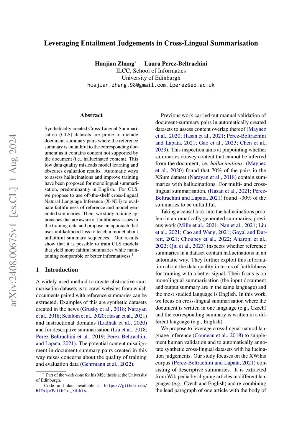 Leveraging Entailment Judgements in Cross-Lingual Summarisation