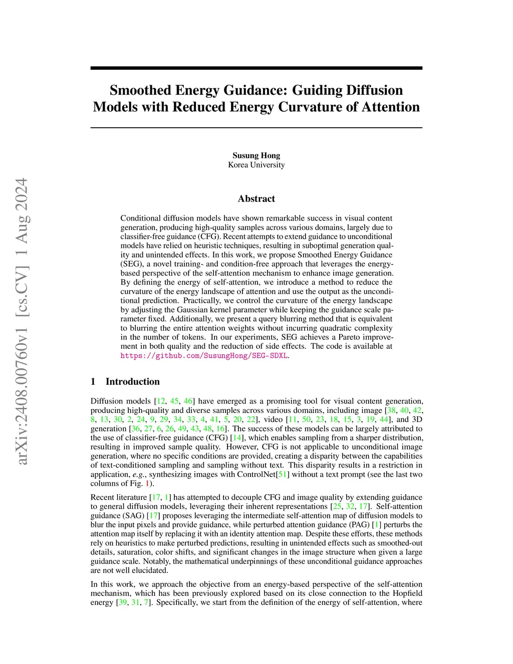 Smoothed Energy Guidance: Guiding Diffusion Models with Reduced Energy
