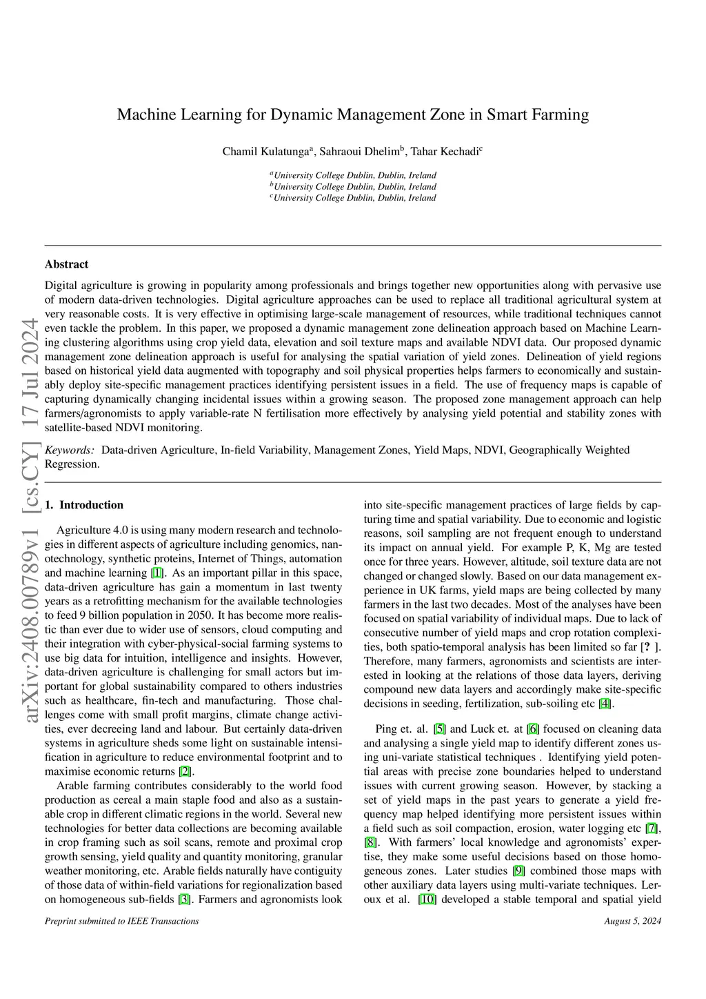 Machine Learning for Dynamic Management Zone in Smart Farming