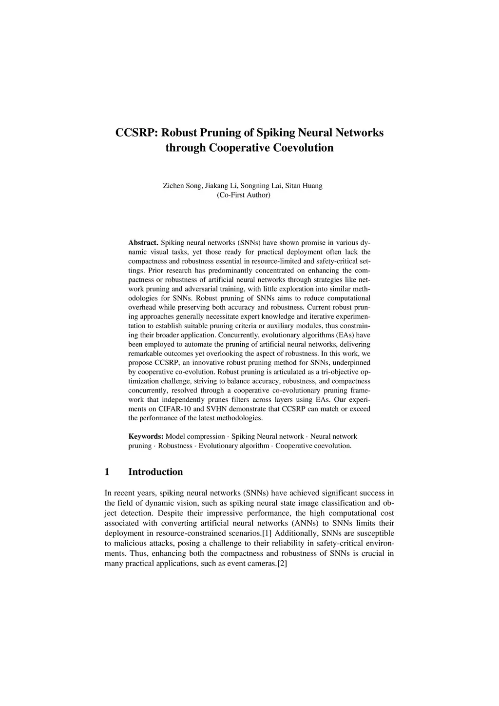 CCSRP: Robust Pruning of Spiking Neural Networks through Cooperative