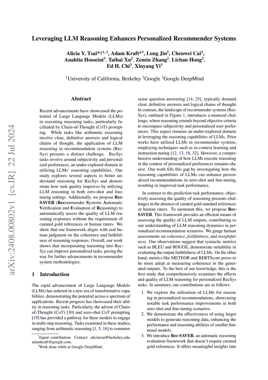 Recent advancements have showcased the potential of Large Language Models (LLMs) in executing reasoning tasks, particularly facilitated by Chain-of-Thought (CoT) prompting. While tasks like arithmetic reasoning involve clear, definitive answers and logical chains of thought, the application of LLM reasoning in recommendation systems (RecSys) presents a distinct challenge. RecSys tasks revolve around subjectivity and personalized preferences, an under-explored domain in utilizing LLMs' reasoning capabilities. Our study explores several aspects to better understand reasoning for RecSys and demonstrate how task quality improves by utilizing LLM reasoning in both zero-shot and finetuning settings. Additionally, we propose RecSAVER (Recommender Systems Automatic Verification and Evaluation of Reasoning) to automatically assess the quality of LLM reasoning responses without the requirement of curated gold references or human raters. We show that our framework aligns with real human judgment on the coherence and faithfulness of reasoning responses. Overall, our work shows that incorporating reasoning into RecSys can improve personalized tasks, paving the way for further advancements in recommender system methodologies.