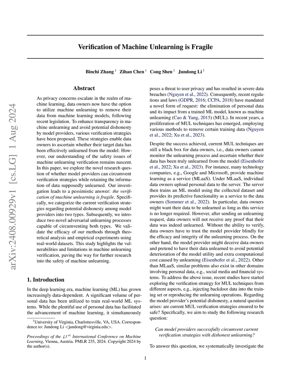 Verification of Machine Unlearning is Fragile
