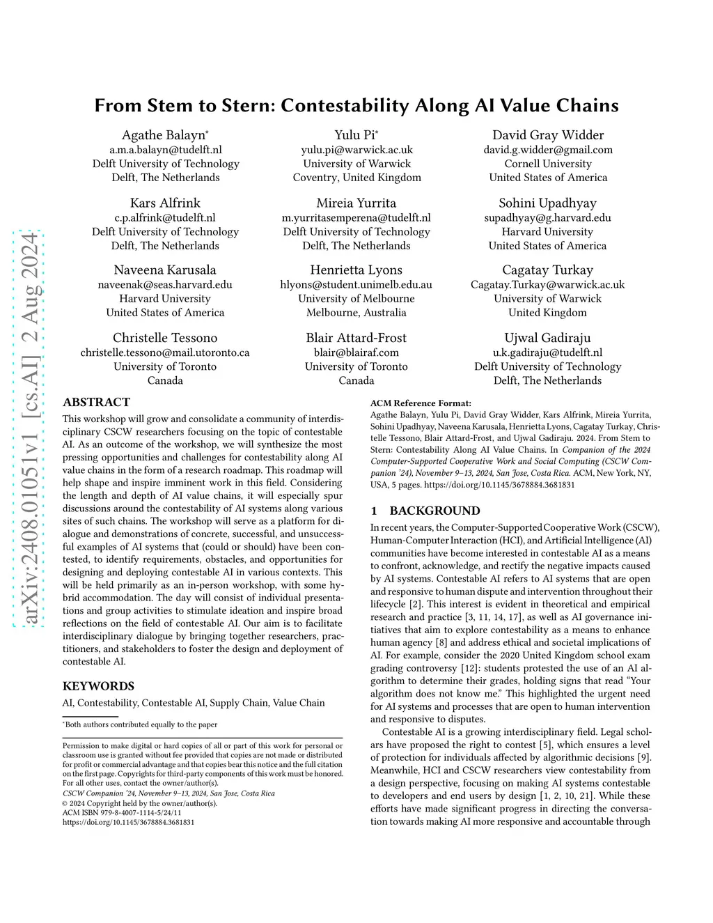 This workshop will grow and consolidate a community of interdisciplinary CSCW researchers focusing on the topic of contestable AI. As an outcome of the workshop, we will synthesize the most pressing opportunities and challenges for contestability along AI value chains in the form of a research roadmap. This roadmap will help shape and inspire imminent work in this field. Considering the length and depth of AI value chains, it will especially spur discussions around the contestability of AI systems along various sites of such chains. The workshop will serve as a platform for dialogue and demonstrations of concrete, successful, and unsuccessful examples of AI systems that (could or should) have been contested, to identify requirements, obstacles, and opportunities for designing and deploying contestable AI in various contexts. This will be held primarily as an in-person workshop, with some hybrid accommodation. The day will consist of individual presentations and group activities to stimulate ideation and inspire broad reflections on the field of contestable AI. Our aim is to facilitate interdisciplinary dialogue by bringing together researchers, practitioners, and stakeholders to foster the design and deployment of contestable AI.