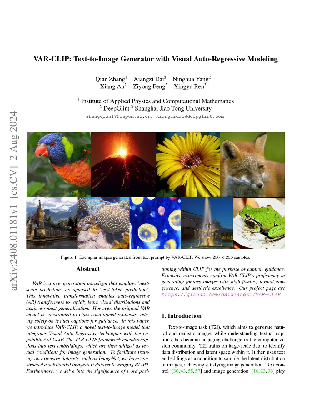 VAR is a new generation paradigm that employs ñext-scale prediction' as opposed to ñext-token prediction'. This innovative transformation enables auto-regressive (AR) transformers to rapidly learn visual distributions and achieve robust generalization. However, the original VAR model is constrained to class-conditioned synthesis, relying solely on textual captions for guidance. In this paper, we introduce VAR-CLIP, a novel text-to-image model that integrates Visual Auto-Regressive techniques with the capabilities of CLIP. The VAR-CLIP framework encodes captions into text embeddings, which are then utilized as textual conditions for image generation. To facilitate training on extensive datasets, such as ImageNet, we have constructed a substantial image-text dataset leveraging BLIP2. Furthermore, we delve into the significance of word positioning within CLIP for the purpose of caption guidance. Extensive experiments confirm VAR-CLIP's proficiency in generating fantasy images with high fidelity, textual congruence, and aesthetic excellence. Our project page are https://github.com/daixiangzi/VAR-CLIP