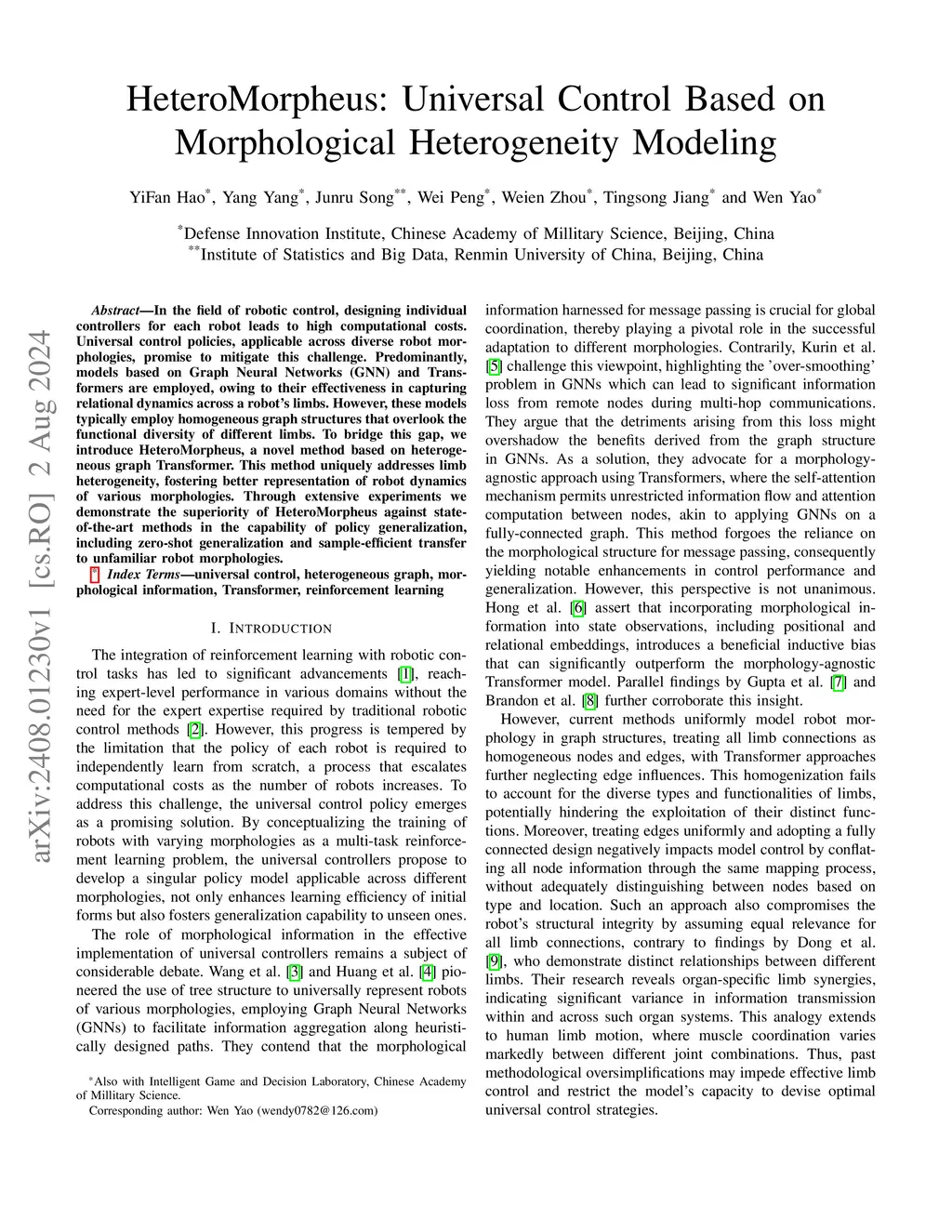 In the field of robotic control, designing individual controllers for each robot leads to high computational costs. Universal control policies, applicable across diverse robot morphologies, promise to mitigate this challenge. Predominantly, models based on Graph Neural Networks (GNN) and Transformers are employed, owing to their effectiveness in capturing relational dynamics across a robot's limbs. However, these models typically employ homogeneous graph structures that overlook the functional diversity of different limbs. To bridge this gap, we introduce HeteroMorpheus, a novel method based on heterogeneous graph Transformer. This method uniquely addresses limb heterogeneity, fostering better representation of robot dynamics of various morphologies. Through extensive experiments we demonstrate the superiority of HeteroMorpheus against state-of-the-art methods in the capability of policy generalization, including zero-shot generalization and sample-efficient transfer to unfamiliar robot morphologies.